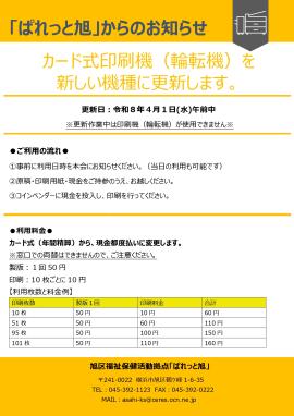 現在「ぱれっと旭」にてご利用いただいている、カード式印刷機(輪転機)を、